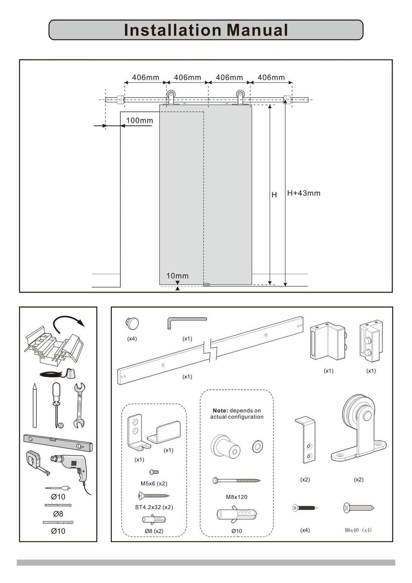 - Heavy duty spacers and M8x120mm coach screws (amount supplied adjusted for the corresponding track length)