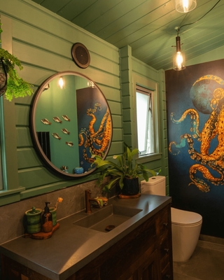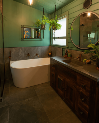 You can opt to purchase the vanity separately without a top or basin. Alternatively, select a custom-made New Zealand Glass Fibre Reinforced concrete top to complement the reclaimed timber vanities.