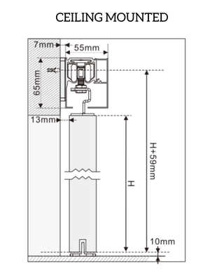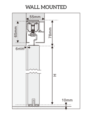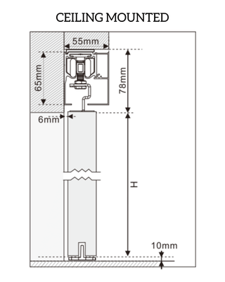 Unlike concealed pocket doors, the pelmet sliding mechanism keeps the door visible while gliding smoothly across the wall on a top-mounted track concealed by a sleek pelmet. This setup is ideal for spaces where wall cavities are unavailable or for those seeking a more architectural statement piece. A wall mounted or ceiling mounted track pelmet system can be selected on ordering.