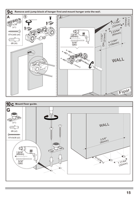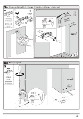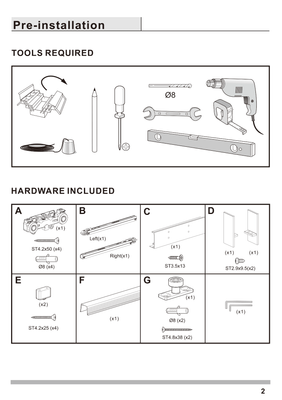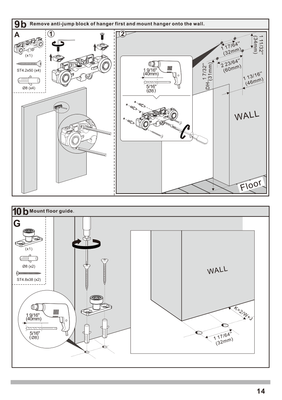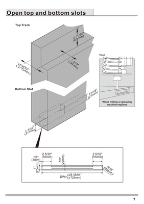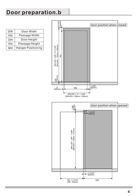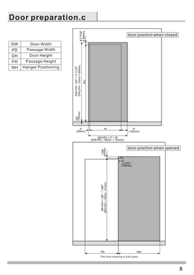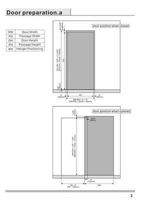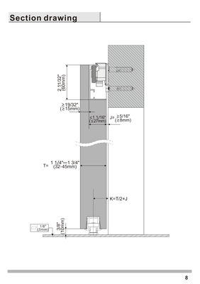 Hardware suitable for doors 32-45mm thick, it is possible to pack out the sliding mechanism if needed to allow for skirting. See the attached dimensional sketch.