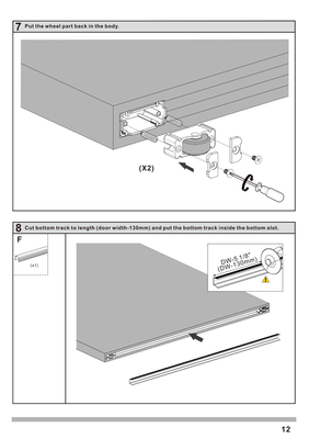 Tracks can be easily cut to suit your exact door width. The 1000 mm track is suitable for doors up to 1000 mm wide, and the 1200 mm track option accommodates doors up to 1200 mm wide. The hardware is rated for doors up to 60 kg, and for safe operation, the sliding mechanism must be securely mounted into solid wall fixings.