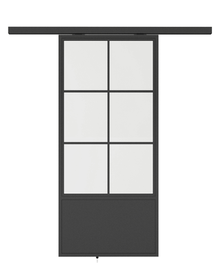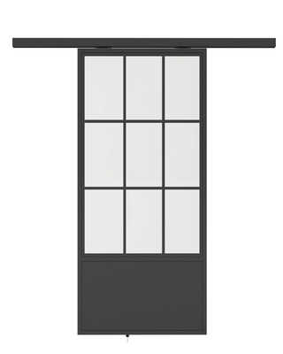 - 6 or 9 Panel carbon steel & glass sliding door with kick plate.